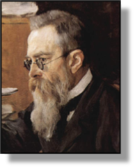 xxxxxThe Russian composer Nikolai Rimsky-Korsakov, a prominent leader of the Nationalist school, was a naval officer before making music his career. He met the Russian composer Mily Balakirev in 1861 and joined the circle of musicians which came to be known as The Mighty Five. This group, which included Modest Mussorgsky and Aleksandr Borodin, aimed to produce authentic Russian music. During the 1860s, with Balakirev’s guidance, he produced a number of successful works, including his symphonic poem Sadko, his Fantasy on Serbian Themes, and Antar, his second symphony. He became professor at the St. Petersburg Conservatory in 1871, and produced the first of his many operas in 1879. Based mainly on Slavonic fairy tales and legend, and full of exotic harmonies, these included May Night, The Snow Maiden, Christmas Eve, Sadko, The Tsar’s Bride, The Legend of Tsar Saltan, The Tale of the Invisible City of Kitezh, and, in 1907, The Golden Cockerel. Other works of note included his Spanish Capriccio, the symphonic suite Scheherazade of 1888, and the Russian Easter Festival Overture. He also wrote a quantity of chamber music, piano pieces and choral works, and more than eighty songs. His compositions were noted for their brilliant orchestration and their outstanding instrumentation. After Mussorgsky’s death, he edited his scores (notably his masterpiece Boris Godunov), and he also completed Borodin’s unfinished opera, Prince Igor. His textbook Fundamentals of Orchestration was published in 1913. Rimsky-Korsakov numbered among his friends the Russian composer Pyotr Tchaikovsky and, among his pupils, the budding composers Igor Stravinsky and Sergei Prokofiev.