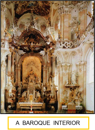 xxxxxBaroque was a revolt against the strict rules of classical art. It roughly spans the 17th century and was followed by Rococo, a more subtle form. In all forms of art, it is characterised by a dynamic intensity made up of movement, energy and tension, designed to appeal directly to the emotions. In painting, it began in Rome with artists like Michelangelo and Caravaggio and then moved northwards, becoming evident to varying degrees in the works of artists like Hals, Van Dyke, Velazquez, Rembrandt and Vermeer. The colours are vibrant, sensuous curves create movement, and the light is manipulated for dramatic effect. Rubens earned himself the title “Creator of Baroque”. But it is perhaps in architecture that baroque is seen in its most extravagant form. Here the new dynamic, sumptuous style produced splendid palaces and churches, with magnificent facades and ornate interiors.