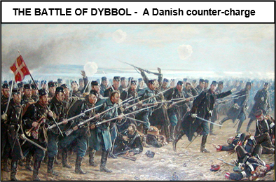 xxxxxThe following month saw a number of skirmishes, the Austrian capture of Vejle, and the beginning of the Prussian bombardment of the Danish fortress of Dybbol. Some 65,000 shells were eventually unleashed on this stronghold before it was stormed and captured by 10,000 Prussian troops in mid-April, despite some gallant resistance (illustrated). The fall of Fredericia followed, and then over the next two months the Germans occupied the whole of the Jutland peninsula and won the Battle of Als, the last major engagement of the war. In the meantime, an attempt to find an international solution to the problem - as in the First Schleswig War - ground to a halt. A Conference attended by Britain, Russia, Sweden and France was held in London, opening on the 25th April, but so complicated were the issues involved that it broke up without reaching any conclusions. The British favoured the Danes - not wanting to see the growth of German naval power in the Baltic - but Russia, still recovering from the Crimean War, was anxious to keep a low profile, and France saw no advantage in becoming militarily involved.