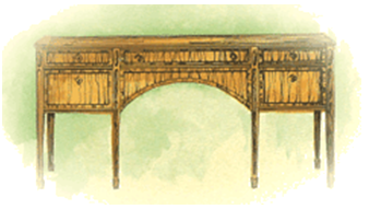 xxxxxThe accomplished English furniture designer Thomas Sheraton was born in Stockton-on-Tees, Durham. It would seem that he had little or no schooling, and was apprenticed to a cabinet maker at an early age. He began work in London around 1790, setting up shop in Wardour Street, Soho, and living on the premises. Only one piece of his work as a cabinetmaker has been authenticated (a glass fronted bookcase) but his prolific designs - many noted for their grace and simplicity - were described and illustrated in the books he published. Prime amongst these was his The Cabinet Maker and Upholsterers’ Drawing Book, made up of four volumes and completed in 1794. In this work, his colour plates and their accompanying notes, in particular, amply testify to his ability as a draftsman, and the depth of his technical knowledge.