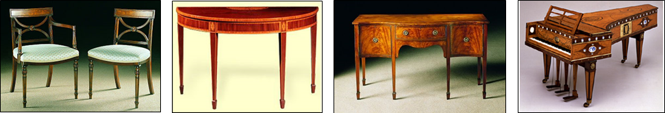 xxxxxNo piece of furniture can be attributed with certainty to Hepplewhite’s firm or to Hepplewhite himself, but his Guide, like Sheraton’s Drawing Book a few years later, proved popular in Britain and had a marked influence on furniture design in the United States. Along with his contemporary and rival Sheraton - who doubtless “borrowed” some of his ideas - he was one of the foremost English furniture designers of the late 18th century.