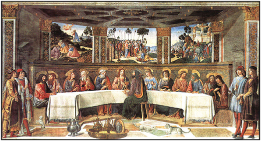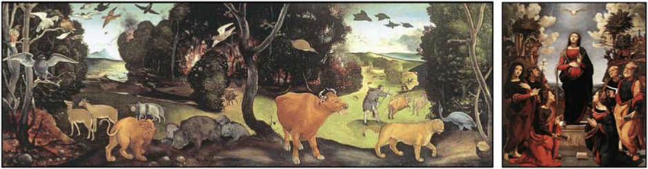Piero: Last Supper (together with Rosselli di Cosimo) – Fresco, Sistine Chapel, Vatican, Rome; Satyr mourning over a Nymph – National Gallery, London; The Forest Fire – The Ashmolean Museum, Oxford; The Immaculate Conception – Uffizi Gallery, Florence; Ghirlandaio: The Calling of Peter and Andrew -