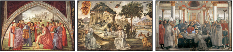 Left to Right : The Renunciation of Worldly Goods, The Stigmata of St. Francis, and The Death of St. Francis