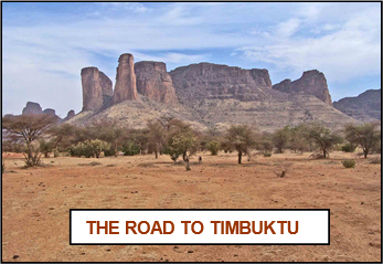 Map (West Africa): licensed under Creative Commons – https://ridgeaphistory.wikispaces.com. Road to Timbuktu: date and photographer unknown.