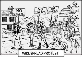xxxxxWith this in mind, the British Chancellor of the Exchequer, Sir George Grenville, had already introduced a Sugar Act in 1764 to raise revenue, and this had met with but limited opposition. In March of 1765, however, when Parliament imposed the Stamp Act, the public response was quite different, and alarmingly so. Rowdy and sometimes violent protests broke out all over the colonies on the grounds that an Englishmen could only be taxed through his own representative assembly. In short, the slogan said it all: "No taxation without representation". To reinforce their argument, a large number of the colonists refused to use the stamps, and many burnt them in public. At ports up and down the coast a blockade was imposed on British merchant shipping. On the more diplomatic front, opposition was just as determined. The so-