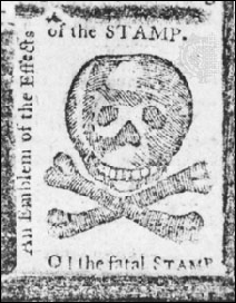 Stamp: from the The Pennsylvania Journal, 1764 – Rare Books and Manuscripts Division. New York Public Library. Cartoon: 1766, artist unknown, subsequently coloured -