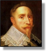 xxxxxAs we have seen, the entry into the war of Christian IV of Denmark and Norway in the Spring of 1625 had raised the hopes of the hard-pressed Protestants in Germany, and had also held out some prospect of a reduction in the power of the Habsburgs. Defeats in the field, however, and the Treaty of Lubeck had put an end to any such hopes and prospects. Then in 1630 Gustavus Adolphus of Sweden (illustrated) entered the war, hoping to succeed where Christian IV had failed. He had good reasons for entering the conflict. Firstly, as an ardent Lutheran, he was more than willing to go to the aid of the North German Protestants. Secondly, he was quite prepared to do the fighting on behalf of France provided he had French support in the form of subsidies. And thirdly, he was anxious to gain complete control of the Baltic region - and waging war made this a possibility.