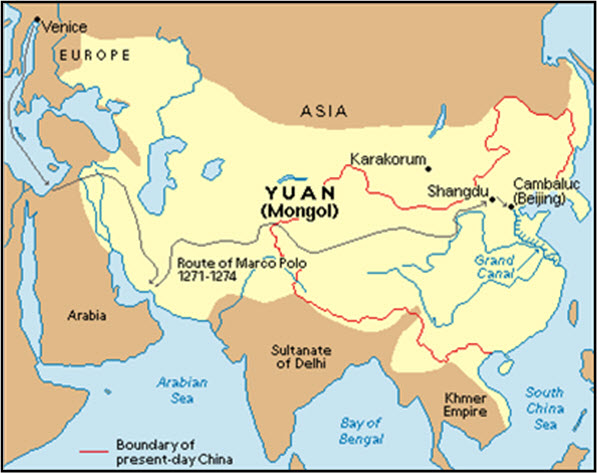 xxxxxIn 1294, Temur, the grandson of Kublai Khan (1274), succeeded him as the Emperor of China. He also regarded himself as the Great Khan of the Mongol Empire, but his influence outside of China was pretty limited. In China itself he maintained order, crushing rebellions in Korea and South China, but he was the last of the Yuan (or Mongol) dynasty to have any real control over this huge empire. Indeed, the fact that he had to deal with internal rebellions and, moreover, that he gained a reputation for his tough fight against large-