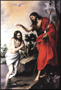 xxxxxHis eleven scenes from the lives of various saints, completed in 1646 for the small cloister of San Francisco in Seville, greatly enhanced his reputation and brought him a vast number of commissions, many from outside the city. It is said that during his career he painted 30 versions of the Immaculate Conception and of the virgin and child. Some of his work was produced as devotional images for the New World, and these included a mural for the cathedral in Guadalajara in western Mexico. He was the first president of the Seville Academy, founded in 1660, and, with the help of several assistants, produced a large number of works for the city's monasteries and churches. Notable among these were his Vision of St. Anthony for the cathedral, and a series of canvases for the Hospicio de los Venerables Sacerdotes, including the celebrated Immaculate Conception, a work of infinite tenderness painted in his "vaporose" (misty) style (illustrated left). His Baptism of Christ is illustrated on the right.