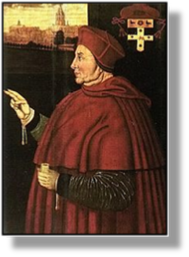 Ipswich, the son of a butcher, and educated at Oxford, graduating at the age of fifteen. After being ordained a priest in 1498, he was made chaplain to Henry VII in 1507 and was thus in a favourable position when he entered the service of the young Henry VIII on his accession in 1509. His loyalty, efficiency and self-confidence were quickly recognised, and he made rapid progress, being made Archbishop of York within five years, and Cardinal and Lord Chancellor in 1515. From then until his fall from favour in 1529, he dominated English politics both at home and abroad. During this period he became, without doubt, the most powerful man in the land, the last of the great clergyman to wield such power and acquire such enormous wealth (said by some to be second only to the king’s). At various times he was Bishop of Lincoln, Durham, Winchester and Bath and Wells - all well paid appointments plus the perks that went with them - and in 1518 he was made Papal Legate in England. York House, his home in London, was a sumptuous palace, and Hampton Court, just outside the city - built in the form of a fortress - was a colossal testimony to his wealth, status and extravagance.