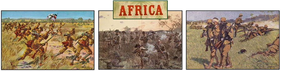 Battle of Mahiwa: ww1live.wordpress.com Last Stand: laststandonzombieisland.com. by German artist Carl Becker Wounded: historycollection.com. picture postcard -