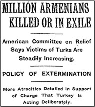 By the Massacre of Adana in April 1909 (taking the lives of some 20,000 Armenians), the Young Turks had made a start in dealing with the “Armenian Question”. Now they came up with the “final resolution”. They had begun this remedy in April 1915 by rounding up and executing, without trial, hundreds of Armenian intellectuals. Now they began disarming and executing all conscripts, and deporting the mass of the Armenian people – women, children and the elderly -