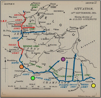 Noyon Salient: mainoapps.com Sketch: ww1today.com Artois/Champagne: en.m.wikipedia.org First Battle of Champagne: wwitoday.com Memorial: courtesy chrismas.co.uk. Christmas: by Harold Burge Robson, Imperial War Museum. Book Cover: work by Geoff Bridges Chocolates: York Museums Trust