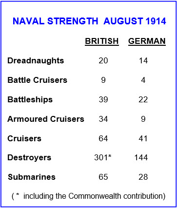 The war at sea, as noted earlier, was a battle front in which the Entente had a decided advantage. As the chart below shows, in capital ships (dreadnought battleships and battle cruisers) the Allies had almost a two-to-one advantage. The only major encounter was the Battle of Jutland in May 1916. It proved indecisive – both sides claiming victory – but after the battle the German fleet returned to base and never ventured out again in force.