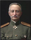 began his army career as a cavalry officer in the Caucasus and distinguished himself in the Russo-Turkish war of 1877-78. When the First World War broke out he played a conspicuous part in the Russian campaign in Galicia in 1914, and it was there, two years later, that he planned and led the successful Brusilov Offensive. As a commander he was a great innovator, and became known for his introduction of new tactics, some of which were later employed by the Germans on the Western Front. He was concerned about the welfare of the men under his command, and it was he, as we have seen, who wrote to the Tsar complaining about the lack of basic equipment, including rifles, and the need for better basic training. The army, he wrote, “was drowning in its own blood”. In May 1917 he was appointed Commander in Chief of the Russian Army, but was replaced in July following the failure of the Kerensky Offensive. Under the Bolshevik government he served as Inspector of Cavalry, but he retired in 1924.