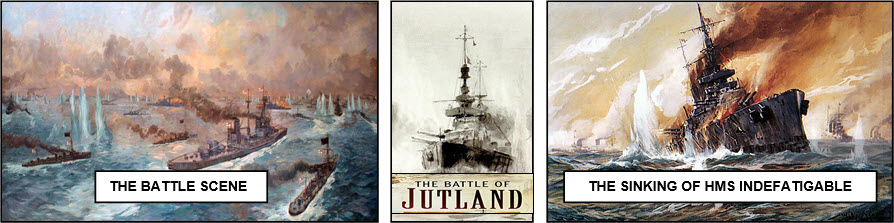 Location Map: eyewitnesstohistory.co Map of Battle: battlesofww1.weebly.com Battle Scene: artuk.org by English artist Robert Henry Smith Sinking of Indefatigable: britishbattles.com by German artist Willy Stower Losses: twitter.com Bulldog: loc.gov Tribune Graphic Scheer: en.numista.com Jellicoe: bbc.co.uk Beatty: fineartamerica.con February 1917: youtubel.com