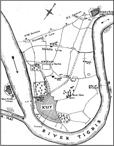 comparative safety of Kut. It was a costly and arduous retreat, and, soon after their arrival there (3rd December), the Ottoman army (eventually augmented to four divisions) wasted no time in surrounding the town. For the British troops at that time, and their support units, it was probably seen as a good defensive position until relief arrived. They had no idea then that, in fact, relief was not going to arrive, and that they would be forced to surrender – and suffer even further – almost six months later.