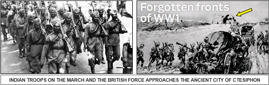 Mesopotamian Campaign (detail): historyofireland.com/WW1 Lower Mesopotamia: en.wikipedia.org Indian machine gunner: FirstWorldWar.com Mesopotamia (detail): nam.ac.uk Battle of Ctesiphon: ww1live.wordpress.com Indian Troops: the times.co.uk Troops at Ctesiphon: The Great World War: A History, Vol VII, edited by Frank A. Mumby, The Gresham Publishing Co. Ltd, London, c1920 Arch of Ctesipnon: artuk.org. The Regimental Museum of the Royal Welsh.
