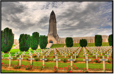 Incidentally, it was on the 8th May 1916, that a group of German soldiers, stationed at Fort Douaumont, tried to heat coffee using flamethrower fuel. The resulting fire spread to a store of grenades and shells nearby, and the explosion that followed killed 679 men and wounded a further 1,800! The remains of the dead were placed in a walled enclosure, and, after the war, this was made into an official German war grave.