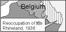 ”, decisions had to be unanimous, and that was a most unlikely scenario. Nor, after the trauma of war and the luxury of peace, was any country anxious to take up arms for what were seen, individually, as reasonable infringements. In March 1936 the German dictator, Adolf Hitler, having already started building tanks, battleships and aircraft, rearmed the Rhineland and, two years later, formed a union (an Anchluss) with Austria. All three acts were expressly forbidden by the treaty, but no action was taken. Appeasement ruled the day.