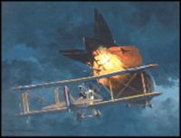 …… Onxthe night of the 2nd September, 1916, a British fighter shot down a Zeppelin as it approached London. This was the first time that this had been achieved, and there was much rejoicing. The pilot, Lt. William Leefe Robinson,