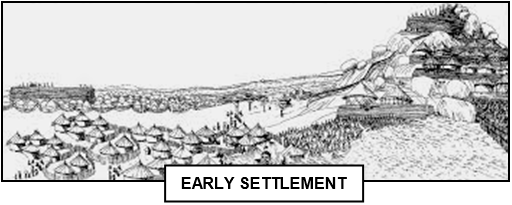 aaaaaThe first development appears to have been a number of stone-walled enclosures on a low-lying hill known as the Acropolis. Then some 50 years later these enclosures were extended into the valley below and, over the years, developed into the building of an immense structure known as the Great Enclosure. This included a huge wall of granite blocks - over 30 feet high in places - enclosing stone-built compounds, the whole linked by a network of narrow, winding alleyways. These stone apartments and dwellings were for the administrators and wealthy merchants. The large labouring class lived outside the complex in hovels made of mud.
